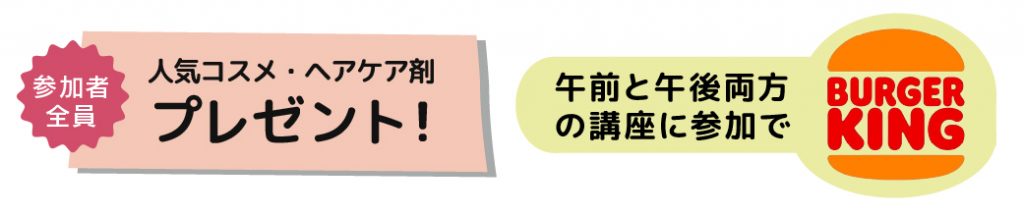 参加者全員に人気コスメ、ヘアケア剤プレゼント!